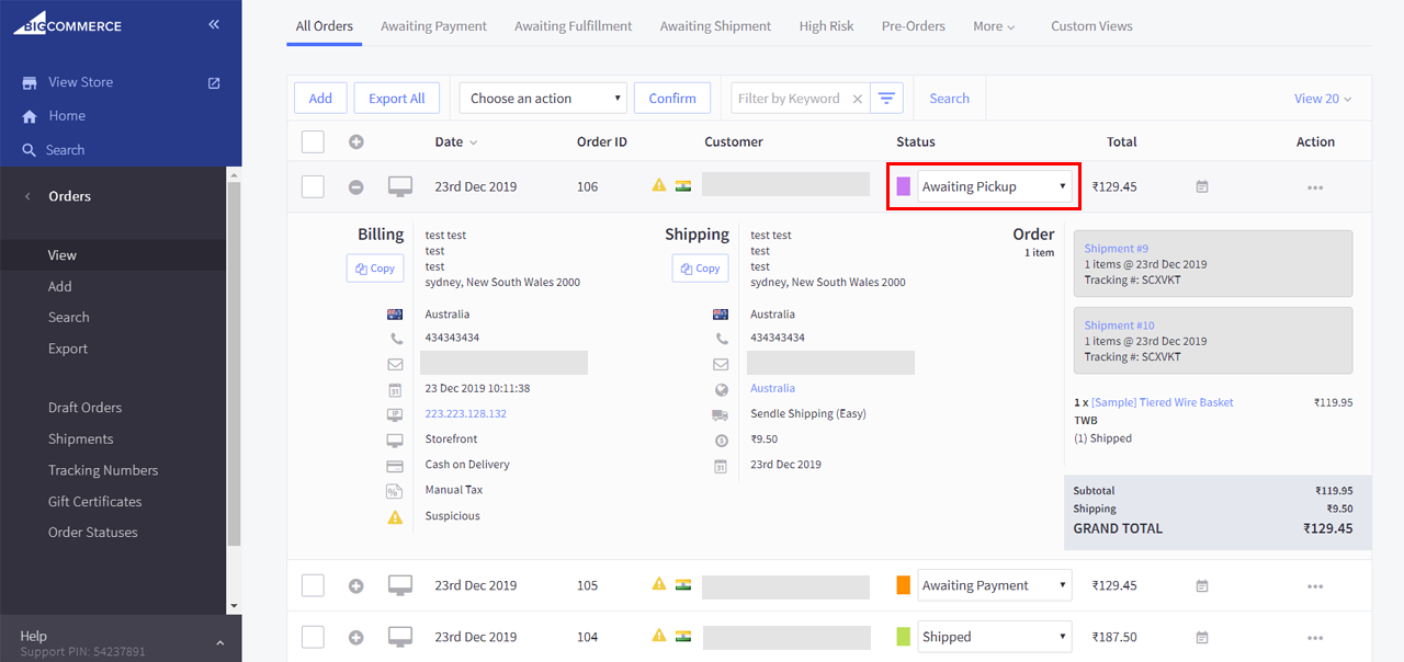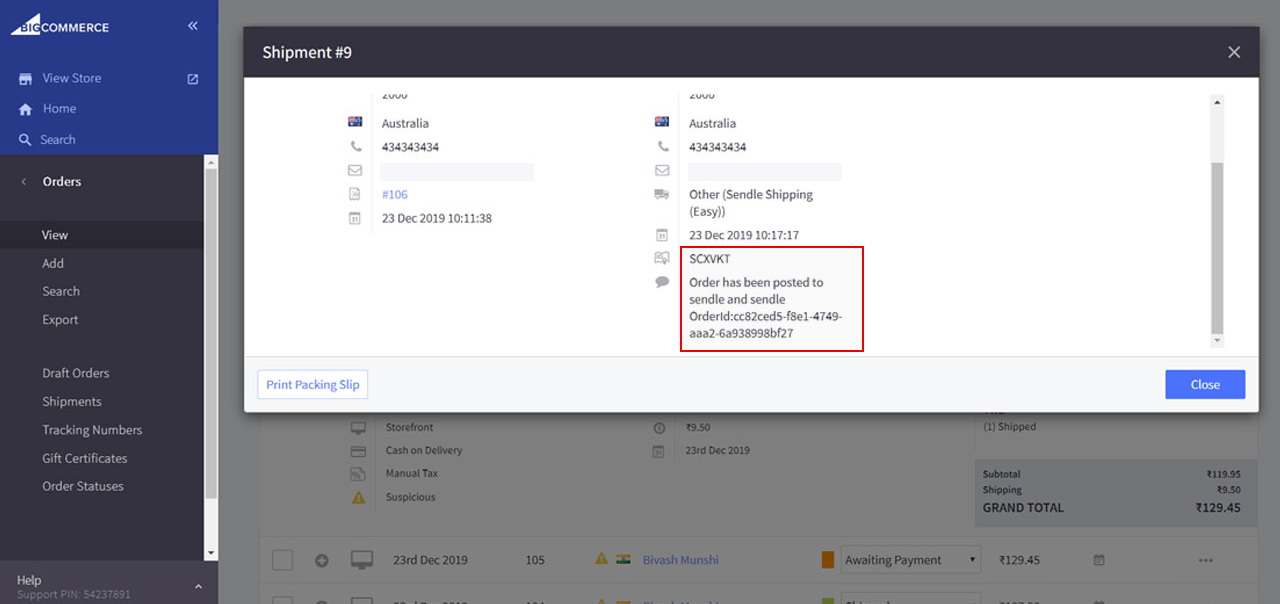 store admin has to change the order status to “Shipped” to book the sendle shipment and the app will then book it and add the sendle order id and tracking number to the order.